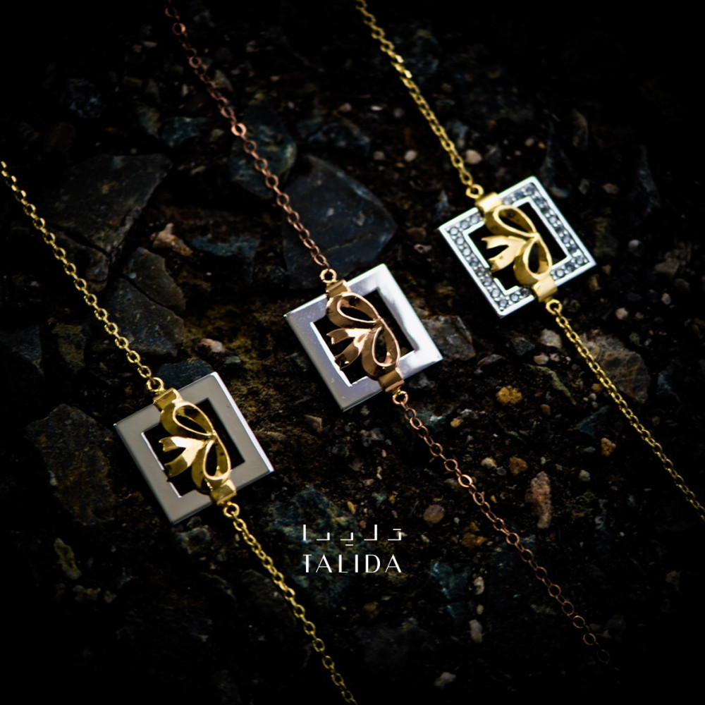 تأتي الاسورة ضمن مجموعة تليدا للمجوهرات والتي تتزين بتعليقة ذهبية على شكل علبة هدايا تتوسطها شريطة ذهبية ويحدها من جميع جهاتها الزركون اللامع, تزخر بالأناقة والجمال