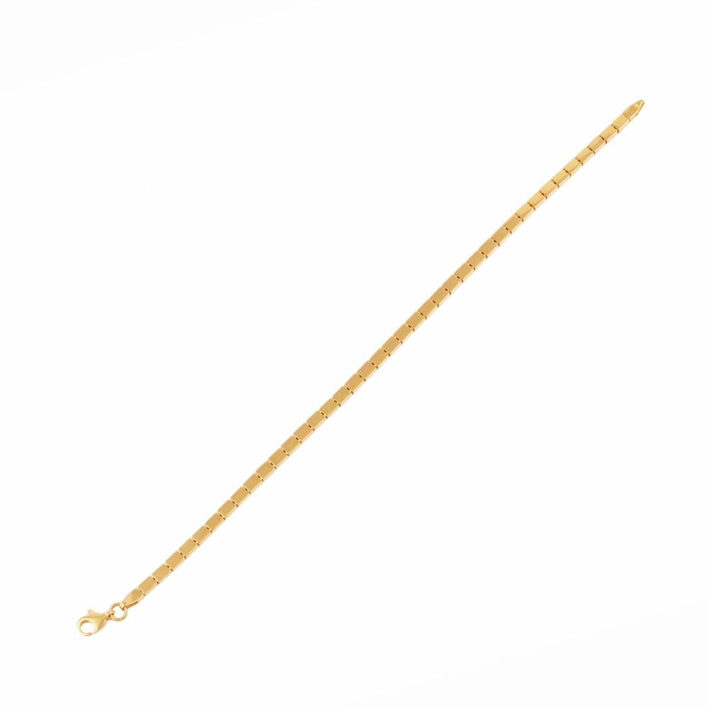 أكملي إطلالتك بأسلوب فاخر مع هذه الإسورة الذهبية البراقة المصممة بشكل مستطيلات متناسقة. هذا التصميم المذهل يجمع بين الأناقة العصرية واللمسات الكلاسيكية، مما يجعلها قطعة مثالية لكل مناسبة.
