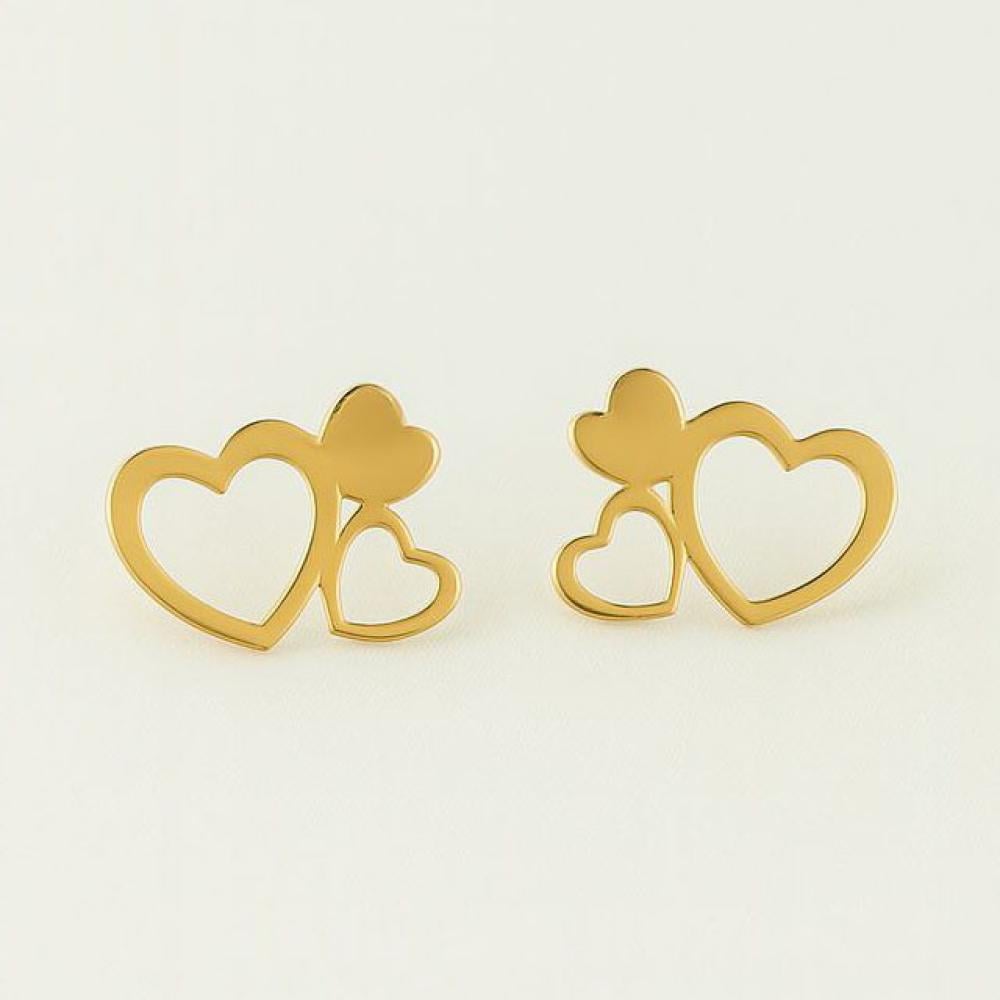 حلق ذهب نقي عيار 18 بتصميم قلوب ناعمة من مجموعة نواعم العماري . قطعة أنثوية صغيرة بحجم 1 سم تضيف لمسة من الأناقة البسيطة ، غير قابلة للتعديل تضمن ثبات التصميم .