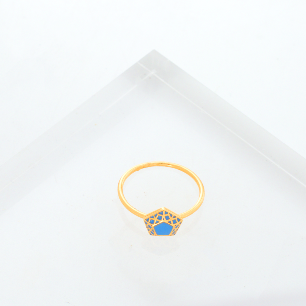 خاتم ذهب خماسي لون ازرق ( عيار 21 )