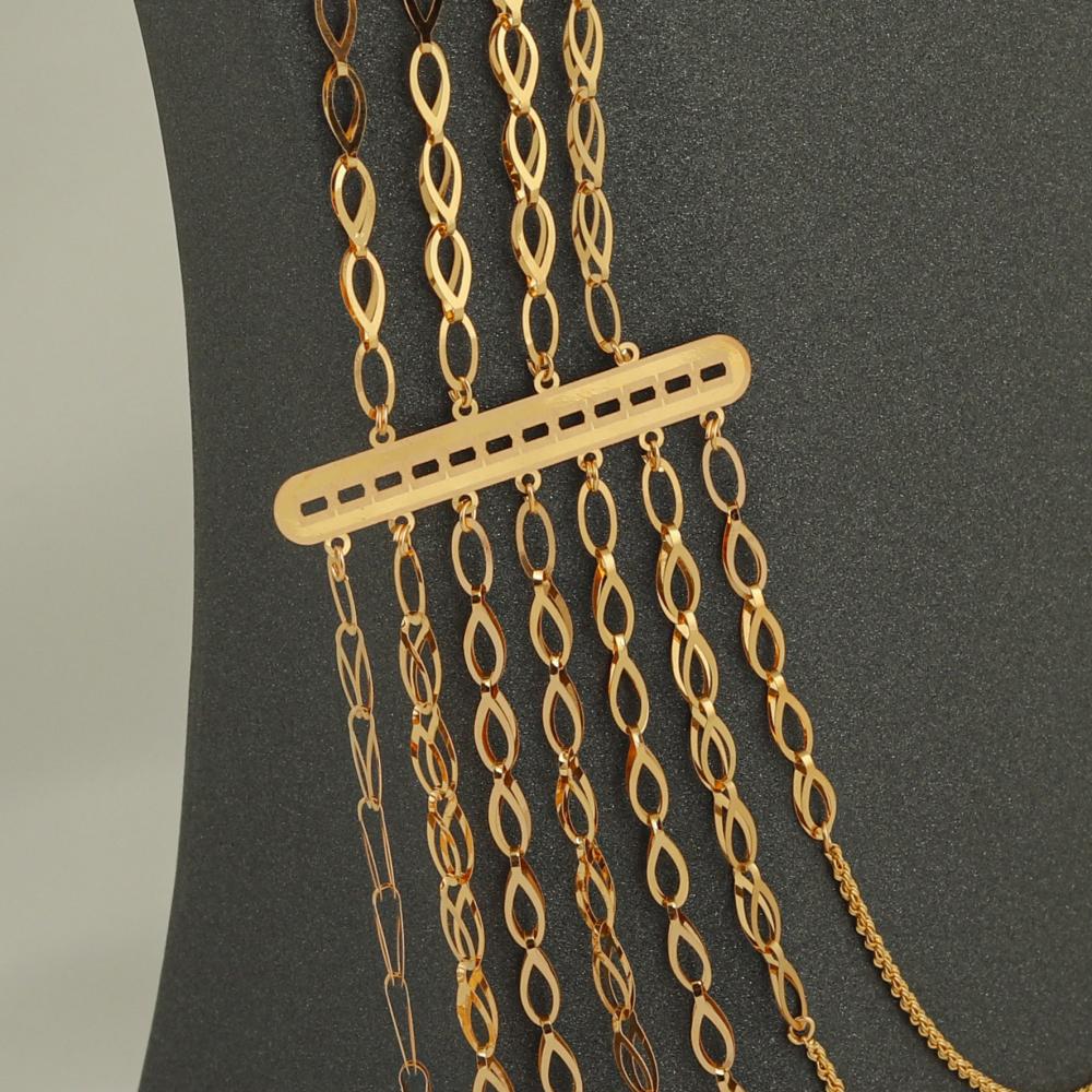 تسوقي الآن طقم ذهب سبعة أدوار عبارة عن قطعة ذهبية بوزن 12.2 جرام من ذهب خالص عيار 21 ، تصميم سبعة أدوار ينساب بانسيابية ساحرة ، يجمع بين سلسلة وخاتم وحلق متناغمين ، قابل للتعديل ليمنحك حضوراً ملكياً وإطلالة فاخرة تسرق الأنظار أينما كنتِ .