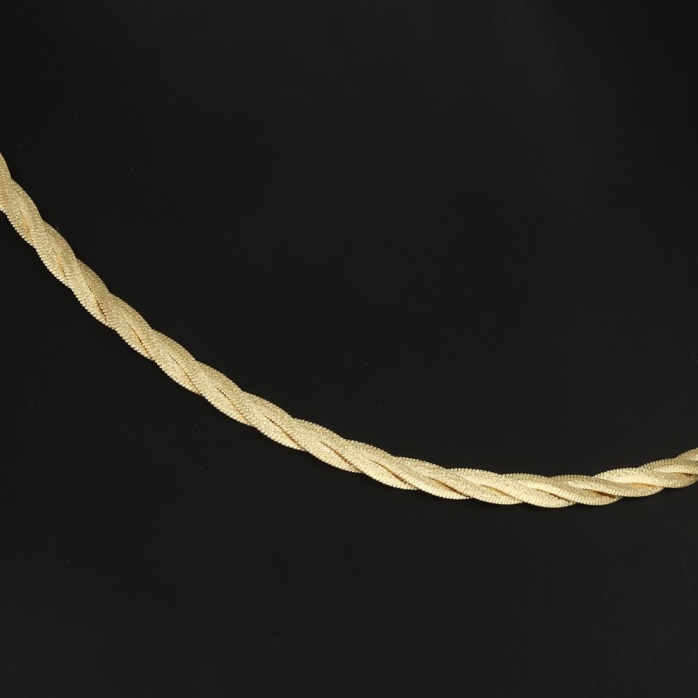 بتصميم مستوحى من جمال الضفائر المتداخلة، يأتيكِ هذا العقد الفريد من الذهب الخالص، ينساب حول عنقكِ بانسيابية تعكس الفخامة والرقي. تفاصيله المتداخلة تحاكي فنّ الحياكة الذهبية، ليمنحكِ لمسة ناعمة تأسر القلوب وتكمل إطلالتكِ بأسلوب راقٍ لا مثيل له.